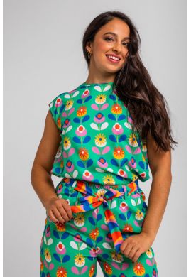 Blusa estampada con detalle de volante en la parte delantera. Composición: 100% Viscosa.