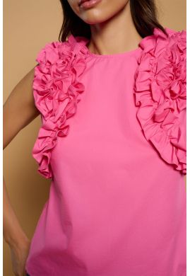 Top sin mangas con cuello barco y nudo drapeado en la parte delantera. Composición:  70 % Tencel y 30% Poliester.
